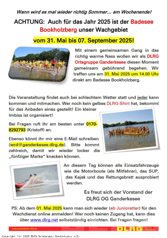 Vollständige Liste der Ansprechpartner der DLRG Ortsgruppe Ganderkesee e.V. findest du hier .