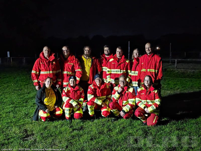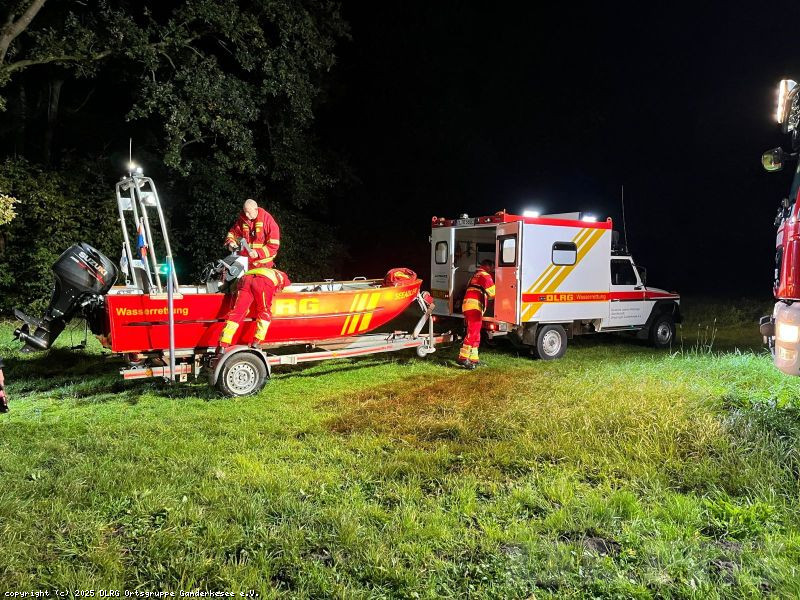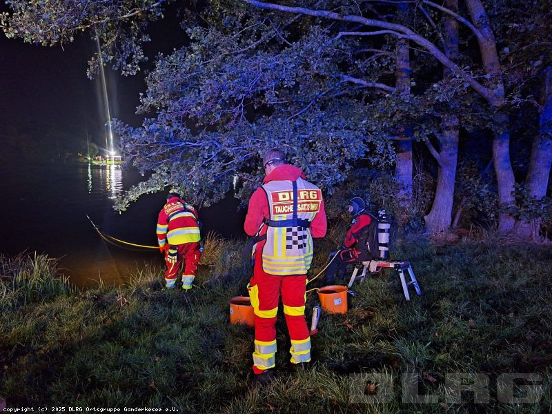 Die ersteintreffende FF Wüsting fand mit einem gestellten Picknick, umgekippten Rollstuhl und Kleidung eine Situation vor, die auf einen erweiterten Suizid vermuten ließ. Eine auf dem See kopfüber treibende Puppe wurde mit einem Boot geborgen und eine Lichtversorgung der Einsatzstelle vorbereitet. Die später eintreffenden Kräfte der FF Oldenburg (Abteilung Wasserrettung) und DLRG OG Ganderkesee e. V. suchten schließlich mit Tauchern sowie Boot und Sonar.nach der zweiten vermissten Person. Der Übungseinsatz wurde schließlich gegen 22 Uhr abgebrochen.
